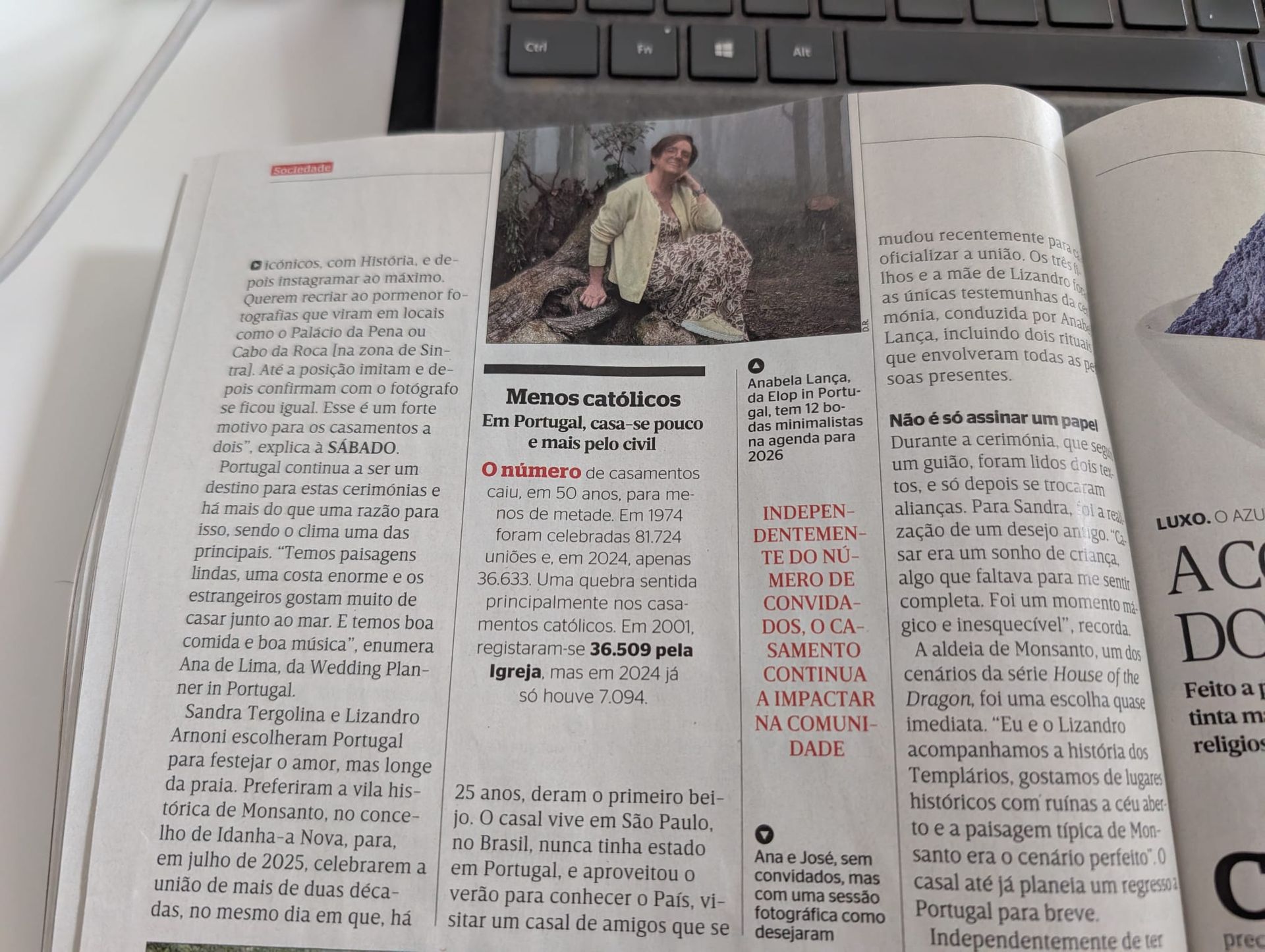 A revista SÁBADO publicou uma reportagem sobre a tendência crescente dos microcasamentos e das cerimónias simbólicas em Portugal, destacando o papel dos celebrantes na criação de celebrações mais íntimas e personalizadas.